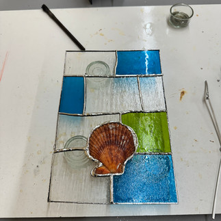 Die Kupferfolientechnik, auch Tiffanytechnik genannt, kennt man vor allem von den Tiffanylampen. Es gibt weitaus mehr Gestaltungsmöglichkeiten als man eigentlich denkt. Man kann durchaus artfremde Materialien wie Muscheln und Holz mitverarbeiten, wie man an meinem Projekt später sieht.